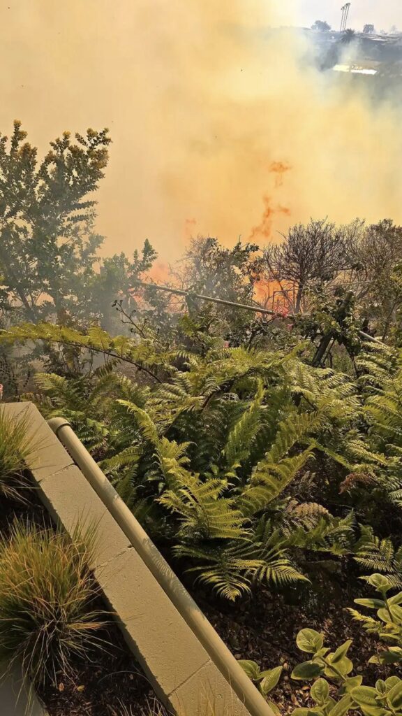 “The view from one of our security cameras,” the actor captioned an X picof flames nearing his home. Woods gave fans another update on his home via X after safely evacuating, writing, “All the smoke detectors are going off in our house and transmitting to our iPhones. I couldn’t believe our lovely little home in the hills held on this long. It feels like losing a loved one.”
